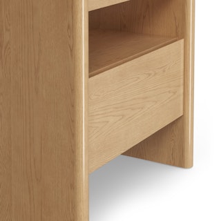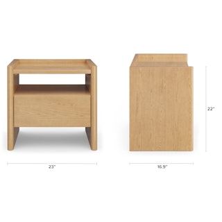 The Torme is characterized by simple lines and thoughtful details. Its large and deep drawer maximizes storage space without compromising on style, and its softly rounded edges are subtle but impactful. The Torme nightstand is a functional, beautiful addition to any space (but especially moody Norwegian studies).
