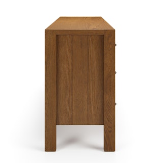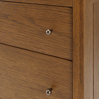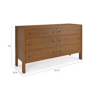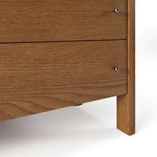 Studied simplicity. The Cassie dresser is composed of simple lines and beautiful materials. With solid wood legs, exposed end grain, and timeless bronze-colored drawer pulls, the Cassie pairs well with your vintage candlestick collection, or with your new handmade vase you brought home from the craft market.