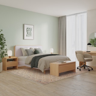 Ready to welcome you into a deep slumber every night, Bjorn is well equipped for those pre-sleep reading sessions—or doom scrolls; we do it, too. You'll be hard-pressed to find a hard corner on the Bjorn with its upholstered headboard and frame with rounded corners throughout; you'll thank us when you don't stub your toe in the middle of the night.