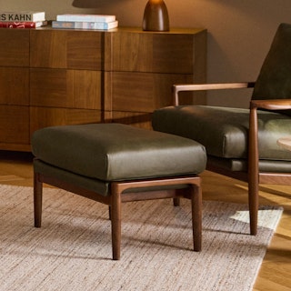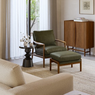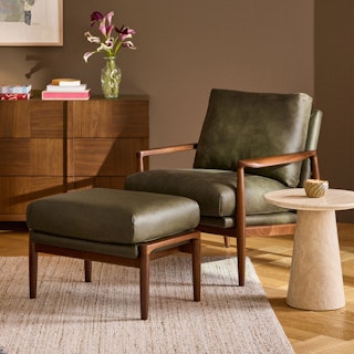 Bavel 26" Leather Lounge Set - Walnut and Charme Green