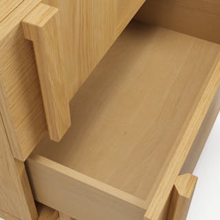 Why should checkerboard parquet be exclusive to flooring? Ayra thought the same and said, "We can do that". With its spacious design, Ayra offers large, deep drawers that maximize storage without sacrificing style. Topped off with its checkerboard parquet drawer fronts and large solid wood handles, Ayra embodies the timeless, refined vibes of yesteryear.