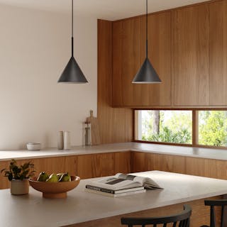 Is your kitchen feeling a bit dark? Do you need more light for your game nights? Let us introduce you to Aino. Its unique braided fabric cord and metal cone shade add a touch of industrial elegance to your space. The single-bulb pendant ensures the right amount of light while creating a cozy atmosphere. Available in three distinct colors, Aino is a special piece that can enhance any room in your home.