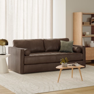 Sven 88" Tufted Leather Sofa Bed - Charme Chocolat