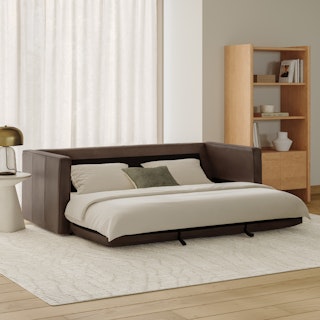 Ever looked at our best-selling Sven and thought “Huh, this thing looks so comfy, I wish they made a Sofa Bed version”. Well, dream no longer. The Sven Sofa Bed is here to make all your slumber-themed dreams come true. The Sven Sofa Bed is Indistinguishable from the rest of the collection, with its signature tufted bench seat, overstuffed cushions, and round bolsters still present. But now, simply grab the two pulls on the backside of the seat cushion and unfold the mattress for a seamless transition—Classy timeless couch to snoozeland in seconds, what's not to love?