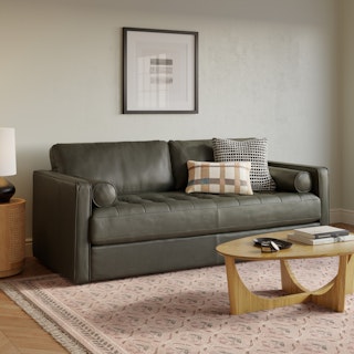 Sven 88" Tufted Leather Sofa Bed - Charme Green