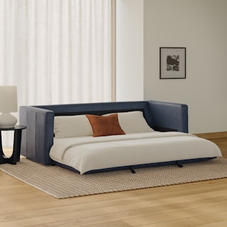Ever looked at our best-selling Sven and thought “Huh, this thing looks so comfy, I wish they made a Sofa Bed version”. Well, dream no longer. The Sven Sofa Bed is here to make all your slumber-themed dreams come true. The Sven Sofa Bed is Indistinguishable from the rest of the collection, with its signature tufted bench seat, overstuffed cushions, and round bolsters still present. But now, simply grab the two pulls on the backside of the seat cushion and unfold the mattress for a seamless transition—Classy timeless couch to snoozeland in seconds, what's not to love?