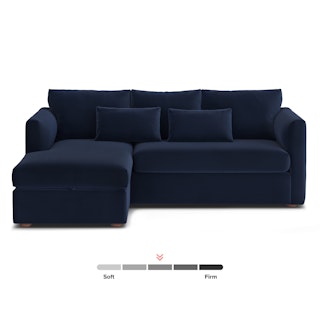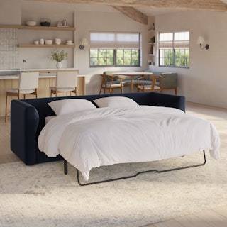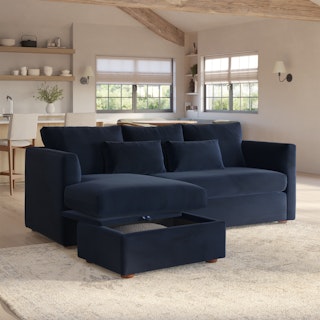 How do you want your sofa to feel? Elevated, comfortable, calm, and collected. With clean details and pleasing design heft, the Marina reversible sleeper storage sectional manages to feel at once laid-back and put together. Generously padded seats and armrests encourage long periods of meandering; grab the sheets from the hidden storage and fold out that memory foam mattress for a more serious nap. Upholstered with Hale velvet, the Marina is fade-resistant, easy to clean, and anti-crush. Throw on your favorite 90s romcom and bask in a little nostalgia.