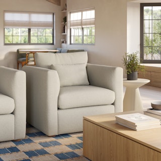 How do you want to feel? Elevated. Comfortable. Calm. Collected. With clean details and pleasing design heft, the Marina lounge chair manages to feel at once laid back and put together. Generously padded seats and armrests encourage long periods of meandering; bolster pillows make perfect props for a surprise nap. Upholstered with Clover fabric, the Marina is treated with a stain-repellant C0 finish, offering exceptional protection to your sofa while being free of gross forever-chemicals. Throw on your favorite 90s romcom and bask in a little nostalgia.