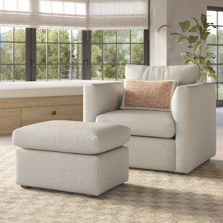 How do you want to feel? Elevated. Comfortable. Calm. Collected. With clean details and pleasing design heft, the Marina ottoman manages to feel at once laid back and put together. Upholstered with Clover fabric, the Marina is treated with a stain-repellant C0 finish, offering exceptional protection to your sofa while being free of gross forever-chemicals. Throw on your favorite 90s romcom, put your feet up, and bask in a little nostalgia.