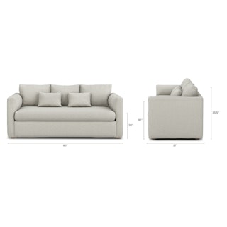 How do you want to feel on your sofa? Elevated. Comfortable. Calm. Collected. With clean details and pleasing design heft, the Marina couch manages to feel at once laid back and put together. Generously padded seats and armrests encourage long periods of meandering; bolster pillows make perfect props for a surprise nap. Upholstered with Clover fabric, the Marina is treated with a stain-repellant C0 finish, offering exceptional protection to your sofa while being free of gross forever-chemicals. Throw on your favorite 90s romcom and bask in a little nostalgia.