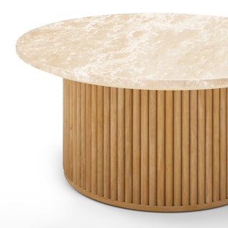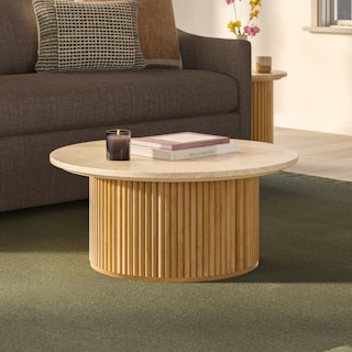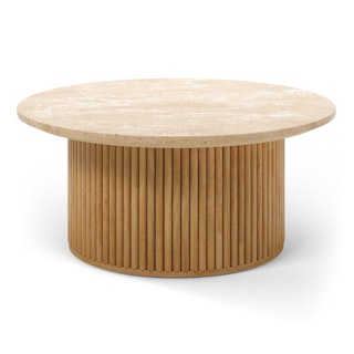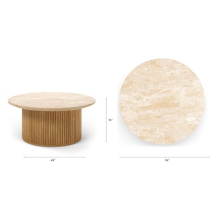 Tala 31.5" Travertine Coffee Table - Natural Oak