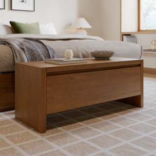 The strong, silent type. The Leif bench embodies the classic tropes we associate with Scandinavia: good-looking, sturdy, impeccable posture. With a hydraulic-assist-lift mechanism to access its spacious storage space, you can rest assured that your Leif not only looks gorgeous, but it's also soft-spoken and sensitive to your (storage) needs.