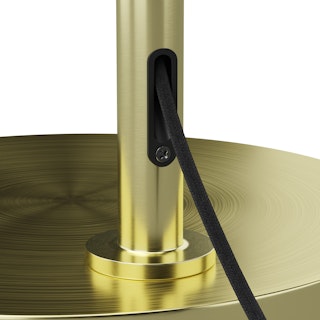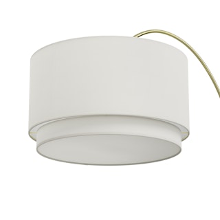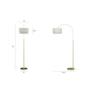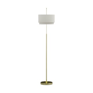 A light that's ahead of the curve. The Zebu short floor lamp features a taut double-shade in a lovely textured linen. Suspended from an antique brass frame, this is a light that's as elegant as its owner (is that... you?).
