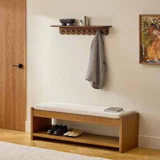 We get it; storage isn't the most fun thing to purchase for your home. But the Shelly collection? Well, that's another story. With an elegant scalloped design and brushed brass hooks, the Shelly collection brings joy and sophistication to an otherwise neglected area of the home. Plus, you'll feel a little joy when hanging up your coat — that's always nice.