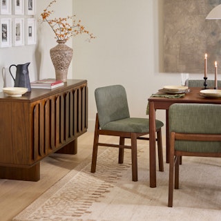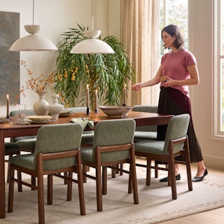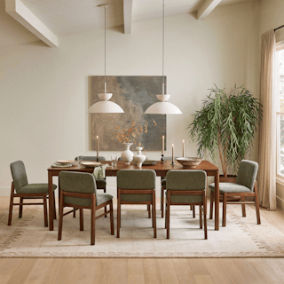 Pretty yet practical, the Mikkel Dining Chair x Torme Dining Table Bundle is the ultimate dining room workhorse. Torme’s softly rounded edges add understated elegance, while its commanding legs ground the table with presence. Mikkel’s padded, upholstered seats invite lingering meals, laughter, and board games. With a drop-in leaf that easily accommodates eight Mikkel chairs, this bundle makes gathering simple and satisfying—if only dinner could be, too.