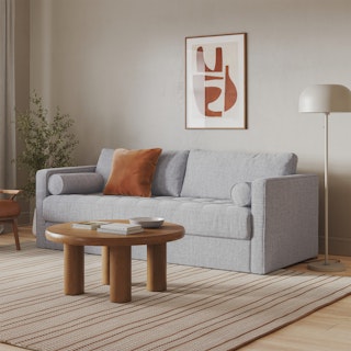 The mid-century classic, reimagined. This fresh take on our most popular collection features the exact dimensions as its tapered-leg sibling, but now fully grounded — dust bunnies have nowhere to hide. Built upon a corner-blocked solid wood frame with loose bolsters and back cushions, this iteration stuns just like its lofty siblings. Tuck it into a nook or make it the main event of your space. It’s destined to be a star.