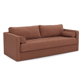 The mid-century classic, reimagined. This fresh take on our most popular collection features the exact dimensions as its tapered-leg sibling, but now fully grounded — dust bunnies have nowhere to hide. Built upon a corner-blocked solid wood frame with loose bolsters and back cushions, this iteration stuns just like its lofty siblings. Tuck it into a nook or make it the main event of your space. It’s destined to be a star.