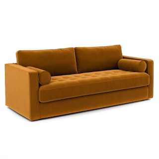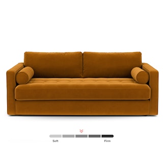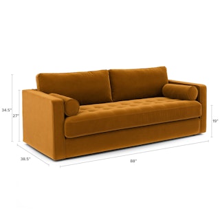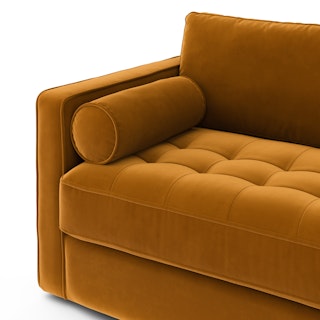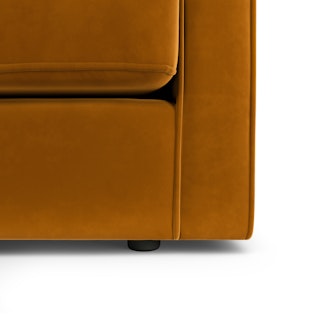The mid-century classic, reimagined. This fresh take on our most popular collection features the exact dimensions as its tapered-leg sibling, but now fully grounded — dust bunnies have nowhere to hide. Built upon a corner-blocked solid wood frame with loose bolsters and back cushions, this iteration stuns just like its lofty siblings. Tuck it into a nook or make it the main event of your space. It’s destined to be a star.