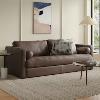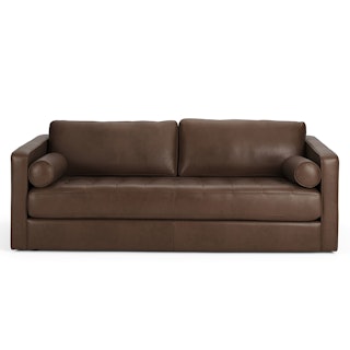 Sven 88" Grounded Tufted Leather Sofa - Charme Chocolat