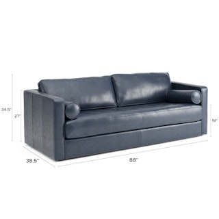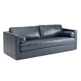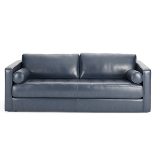 Sven 88" Grounded Tufted Leather Sofa - Oxford Blue
