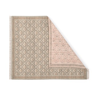 Transform the atmosphere of your home with a simple flip. Cecile features a reversible design with a rich, textured floral motif on each side: one side in Olive Green and the other in Earthy Beige — what'll it be today?