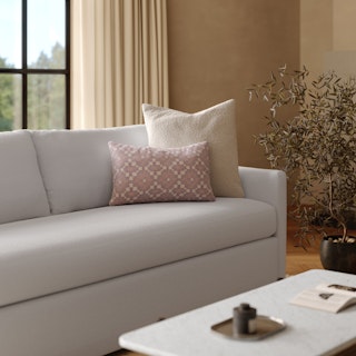 Pattern-forward? Check. The Elfin pillow takes notes from South Indian medallion patterns. These pillows' decorative patterns are woven on a loom, giving the product a smooth handfeel and uniform finish.