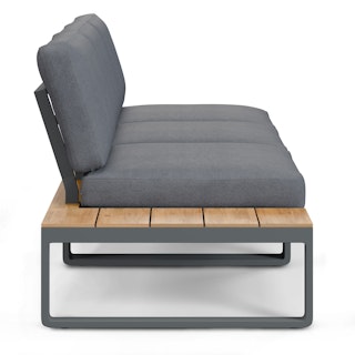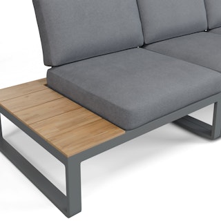 Function and fashion, together. The Kezia is all the loungey comfort of a deck chair, plus the drink-holstering convenience of a side table in a single piece of furniture. Constructed with a tough aluminum base and acacia wood, the Kezia will see you through many seasons of barbeques and late-night patio beers.