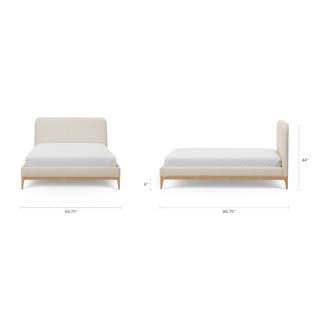 - Fully upholstered frame and headboard with a foam and poly fiber fill