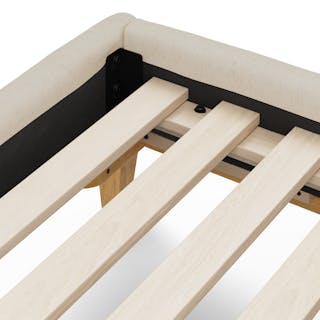 - Fully upholstered frame and headboard with a foam and poly fiber fill