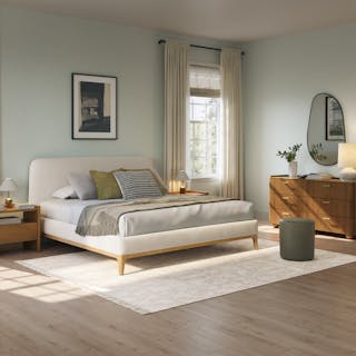 After making waves in the dining room, our Rosin collection is now ready to take on the bedroom—specifically, your bedroom... It's in for a major upgrade. Signature Rosin details are still present, including an exposed solid-wood-framed base, a densely cushioned foam-and-fiber frame, and all wrapped in a stain-repellent cover. With its timeless coastal aesthetic, the Rosin bedroom collection blends elegance with pure comfort. What else would you need in a bed? We consider it covered.