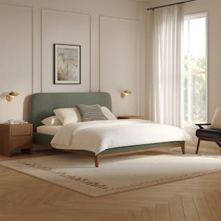 Rosin King Upholstered Bed - Smoked Oak and Welsh Green