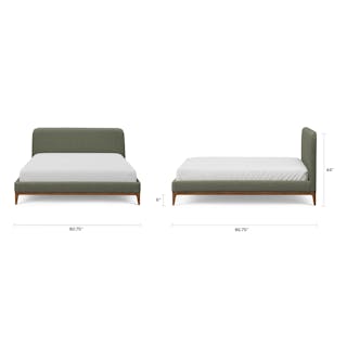 - Fully upholstered frame and headboard with a foam and poly fiber fill