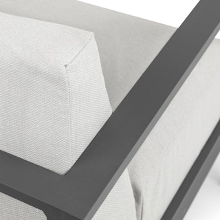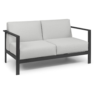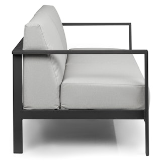 Sit back and relax. Designed with a thick, exposed powder-coated aluminum frame and an ergonomic design sensibility, the Burkel has got your back. Featuring cushy yet firm seat and back cushions, this sofa is upholstered in a durable abrasion-resistant basketweave fabric equipped with waterproof slips for added protection against the elements.