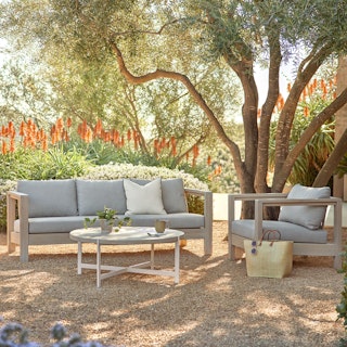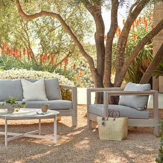 The dog days of outdoor lounge chairs. With its simple, open lines and solid teak wood frame, the Palmera is the spot to soak up some quality vitamin D. Its deep seat and foam-padded cushions make one heavenly space for taking in those rays. Invite your friends and fill up the ice cube trays — that's 'trays', plural. You'll want to be here awhile.
