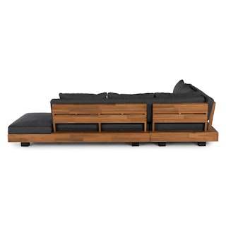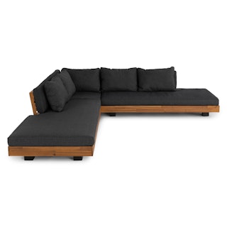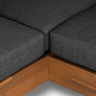 Get low. It will be love at first sight when you lay eyes (and then your whole body) on the Lubek Sectional Set. The L-shaped sectional features a solid acacia wood base and is complimented by structured yet comfortable weather-resistant cushions. Where will you put your snacks, you ask? The Lubek Coffee Table is just the spot. With matching solid acacia wood construction, it’s the perfect companion. This set was meant to be.