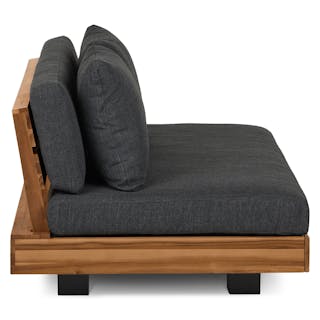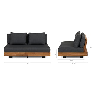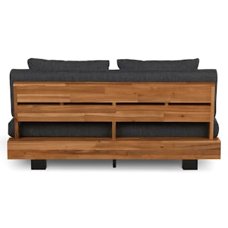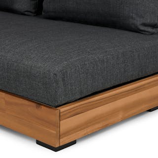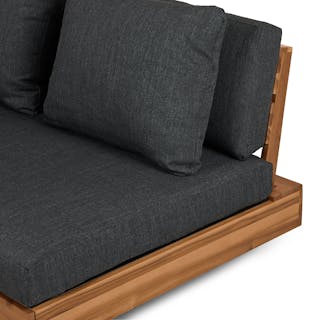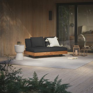 Stay a while. The Lubek loveseat is built from a solid acacia wood base. The sofa is set close to the ground, encouraging you to really sink into those weather-resistant cushions. Dark cushions and super clean lines add to the Lubek’s modern look, while the warmth of the acacia wood makes the sofa easy to pair with any backyard set up. We call this look “low key modernism."