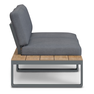 Function and fashion, together. The Kezia is all the loungey comfort of a deck chair, plus the drink-holstering convenience of a side table in a single piece of furniture. Constructed with a tough aluminum base and acacia wood, the Kezia will see you through many seasons of barbeques and late-night patio beers.