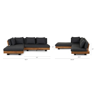Get low. It will be love at first sight when you lay eyes (and then your whole body) on the Lubek Sectional Set. The L-shaped sectional features a solid acacia wood base and is complimented by structured yet comfortable weather-resistant cushions. Where will you put your snacks, you ask? The Lubek Coffee Table is just the spot. With matching solid acacia wood construction, it’s the perfect companion. This set was meant to be.