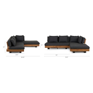 Get low. It will be love at first sight when you lay eyes (and then your whole body) on the Lubek Sectional Set. The L-shaped sectional features a solid acacia wood base and is complimented by structured yet comfortable weather-resistant cushions. Where will you put your snacks, you ask? The Lubek Coffee Table is just the spot. With matching solid acacia wood construction, it’s the perfect companion. This set was meant to be.