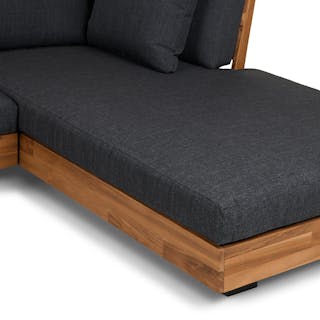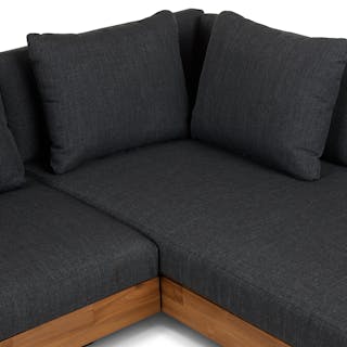 Get low. It will be love at first sight when you lay eyes (and then your whole body) on the Lubek Sectional Set. The L-shaped sectional features a solid acacia wood base and is complimented by structured yet comfortable weather-resistant cushions. Where will you put your snacks, you ask? The Lubek Coffee Table is just the spot. With matching solid acacia wood construction, it’s the perfect companion. This set was meant to be.