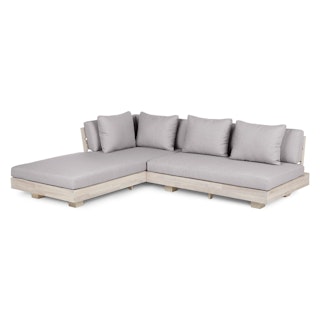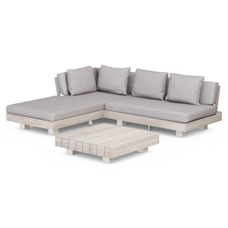 Get low. It will be love at first sight when you lay eyes (and then your whole body) on the Lubek Sectional Set. The L-shaped sectional features a solid acacia wood base and is complimented by structured yet comfortable weather-resistant cushions. Where will you put your snacks, you ask? The Lubek Coffee Table is just the spot. With matching solid acacia wood construction, it’s the perfect companion. This set was meant to be.