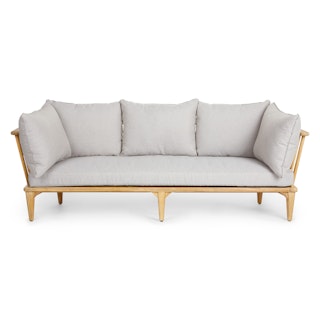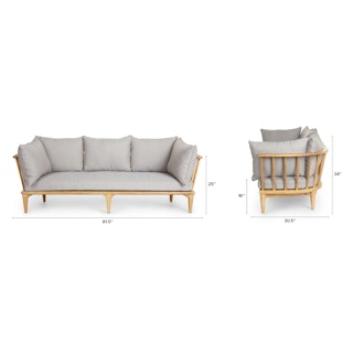 R + R, but make it cute. The Sora sofa is mid-century goodness in 21st century materials. A solid wood base, rounded corners, and pretty spindled back makes for an outdoor sofa that is eye-catching but has substance — just like your summer crush. Rest on those plush cushions between sets of beach volleyball, knowing that those pillows are upholstered in weather-resistant fabric and will brush off easily. Serve!