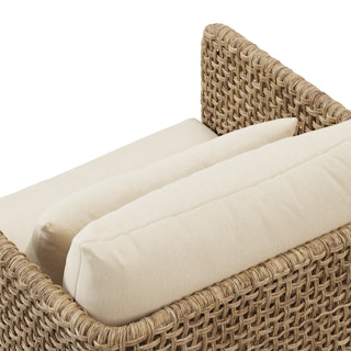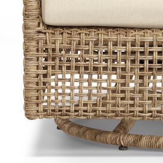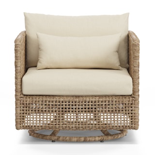 The best kind of fair-weather friend. With synthetic all-weather wicker, the Robbi Swivel Lounge Chair just wants to spend the summer outside, basking in the sun and soaking up the happy vibes of your al fresco dinners. The open-weave wicker feels visually light and relaxed, and the 360-degree swivel mechanism ensures you'll always be the center of the conversation — it is your party, after all.