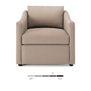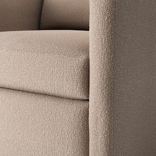 - Upholstered in a soft, non-absorptive bouclé fabric. Bouclé is an excellent choice for those who want an easy-to-care-for, style-forward lounge chair