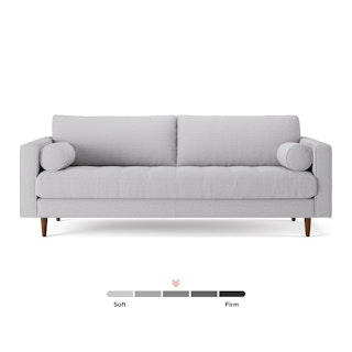 There’s a reason this is our most popular sofa. This modern take on a mid-century classic features crisp lines, a tufted benchseat, and two luxuriously stuffed back cushions. Two matching round bolsters complete the look.
