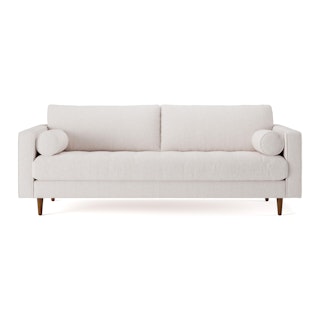There’s a reason this is our most popular sofa. This modern take on a mid-century classic features crisp lines, a tufted benchseat, and two luxuriously stuffed back cushions. Two matching round bolsters complete the look.