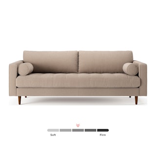 There’s a reason this is our most popular sofa. This modern take on a mid-century classic features crisp lines, a tufted benchseat, and two luxuriously stuffed back cushions. Two matching round bolsters complete the look.