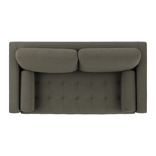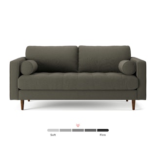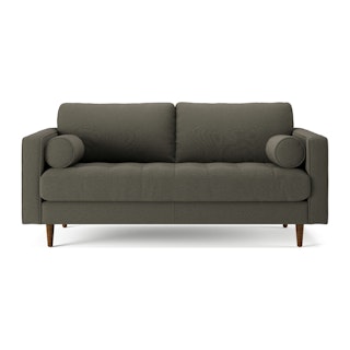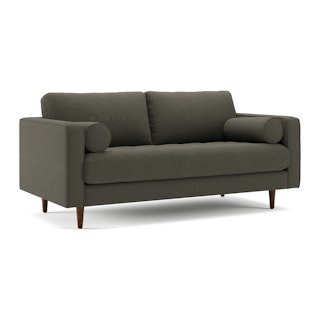 Our most popular sofa, reimagined for apartment living. This modern take on a mid-century classic features clean lines, a tufted benchseat, and luxuriously stuffed back cushions. Two matching round bolsters complete the look.