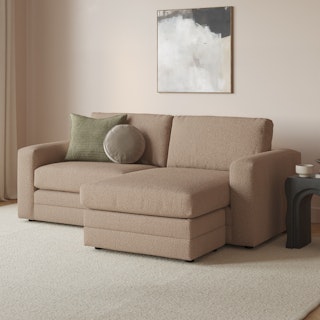 - Upholstered in a soft, non-absorptive bouclé fabric. Bouclé is an excellent choice for those who want an easy-to-care-for, style-forward sectional