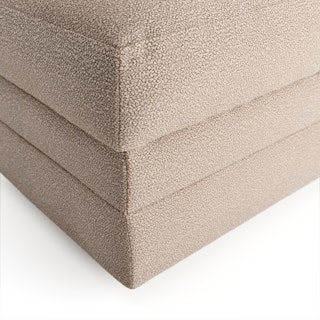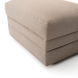 - Upholstered in a soft, non-absorptive bouclé fabric. Bouclé is an excellent choice for those who want an easy-to-care-for, style-forward ottoman